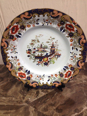 English W&B Ironstone Plate - Oriental Scene Polychrome 1870