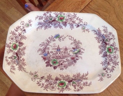 Large Serving Dish Antique Tyrol Wedgwood Ironstone purple Flower
