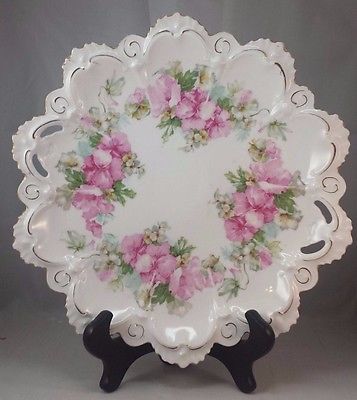 1900 Victorian 2 Handle Cake Plate PINK ROSES MZ Austria Early Moritz Zdekauer