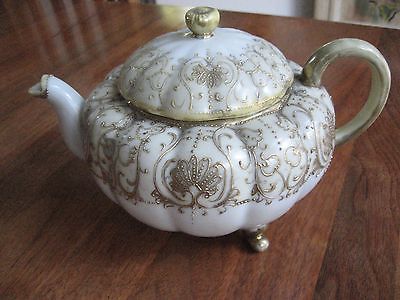 Title (ebay affiliate link): Antique Nippon Maple Leaf Gold White Teapot Japan Good Cond. Moriage OLD