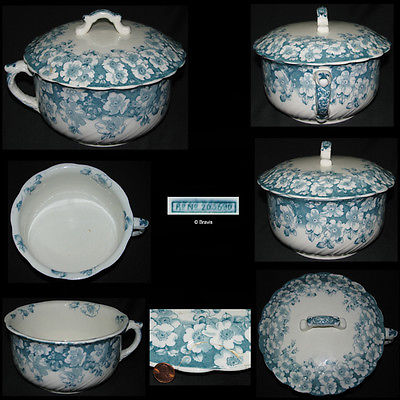 Antique IRONSTONE Transferware ROSES Chamber Pot & Lid England Rd No 203690