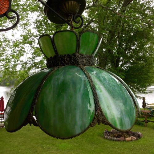Beautiful Antique Curved Green Slag Glass Lamp Ceiling