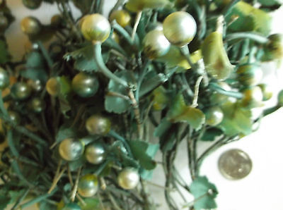 Antique- VINTAGE-blue,green IRIDESCENT -GLASS MILLINERY BERRIES stems GERMANY