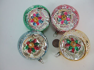 3 Vintage Mercury Glass Multi Color Snowflake Indent Mica Christmas Ornament