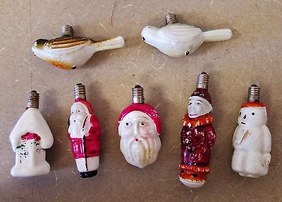 7 VTG Painted Figural Glass Christmas Light Bulbs Birds, Santa, Snowman, House
