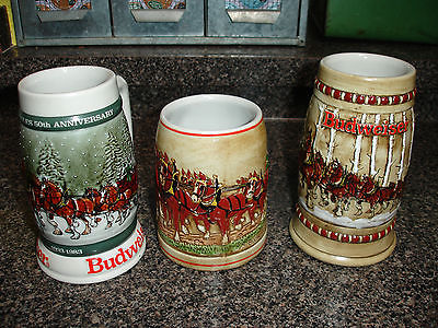 1980, 1981, & 1982 BUDWEISER HOLIDAY MUGS - STEINS 50TH ANNIVERSARY (SET OF 3)