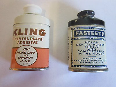Title (ebay affiliate link): Early Fasteeth and Kling Tooth Powder SAMPLE Tins Dental Adhesive Powder Tin