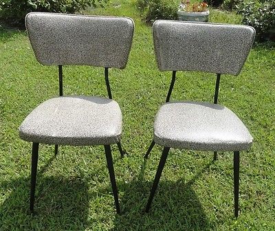 Two Mid Modern Vintage Retro Metal & Vinyl Chairs Kitchen Dining DInette