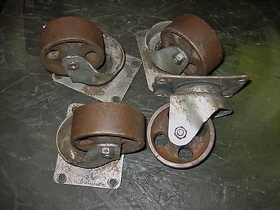 Vintage industrial salvage cast iron caster wheels, steampunk x 4 Rapistan