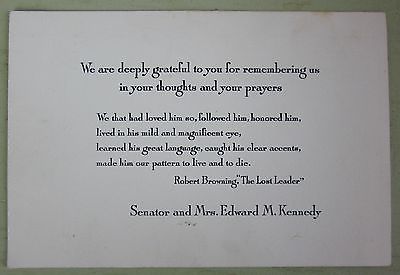 Title (ebay affiliate link): Original Thanks for Prayers Card Sen. & Mrs. Edward KENNEDY "The Lost Leader"