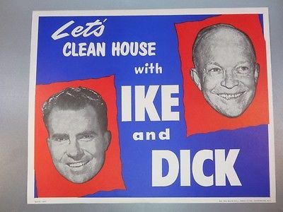 Title (ebay affiliate link): 1952 EISENHOWER NIXON CAMPAIGN POSTER "Let's Clean House with Ike & Dick" RARE