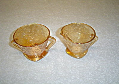 Jeannette Glass Floragold Creamer & Sugar