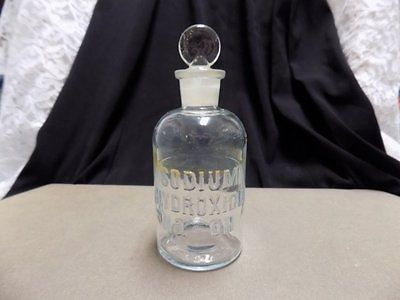 Title (ebay affiliate link): OLD APOTHECARY~CHEMICAL~PHARMACY BOTTLE~T.C.W. CO~SODIUM HYDROXIDE~COIN STOPPER