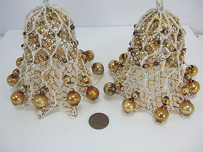 2 Large Vintage Mercury Glass Bead Wire Bell Christmas Ornament