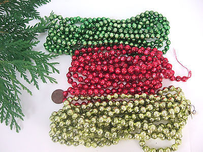 3 Vintage Mercury Glass Green Red Chartreuse Bead Christmas Tree Garland