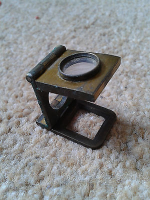 ANTIQUE SMALL POCKET FOLDING BRASS MAGNIFYING GLASS LOUPE THREAD COUNTER STAMPS