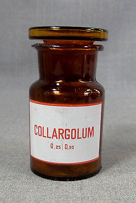 Title (ebay affiliate link): ANTIQUE APOTHECARY PHARMACY RX AMBER GLASS BOTTLE JAR COLLARGOL COLLOIDAL SILVER