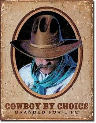 Cowboy By Choice Western Tin Sign Retro Home Bar Garage Wall Decor Gift USA 16"