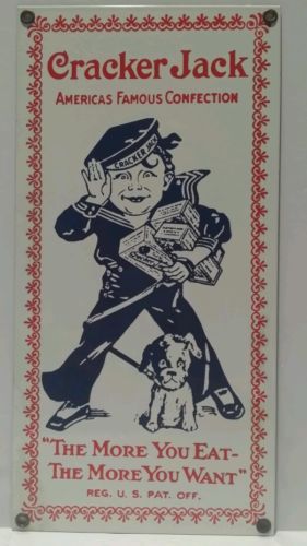 Title (ebay affiliate link): Vintage Cracker Jack Porcelain Enamel Metal Sign by Ande Rooney 6x12 Mint Cond