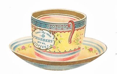 Coffee Cup Thurber's Coffee Antique Vintage Die Cut Trade Card