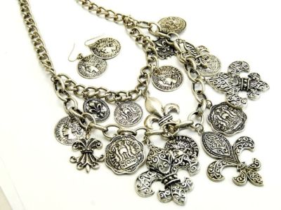 Title (ebay affiliate link): CHUNKY ANTIQUE LOOK COINS FLEUR DE LIS BIB NECKLACE SET