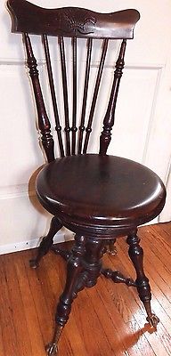 Title (ebay affiliate link): RARE ANTIQUE VICTORIAN 1880s SOLID MAHOGANY ADJUSTABLE CLAW FOOT PIANO STOOL