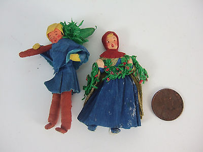 2 Vintage Christmas Swedish Crepe Paper Composite Face Miniature Dolls-Sweden