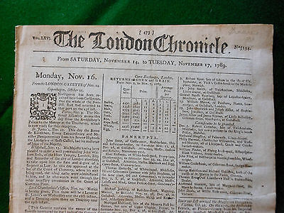 Title (ebay affiliate link): The London Chronicle. From Saturday, November 14, to Tuesday, November 17, 1789.