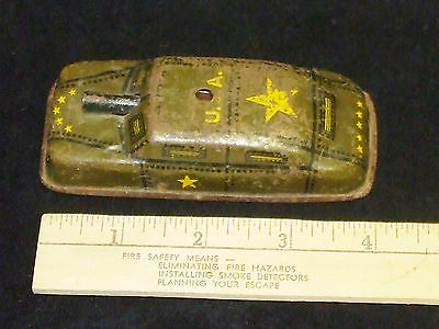 ABOUT WWII PERIOD TIN ARMY ARMORED CAR WITH CANNON RUBBER WHEELS