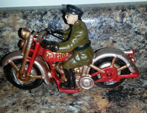 ANTIQUE CAST IRON PATROL MOTORCYCLE TOY