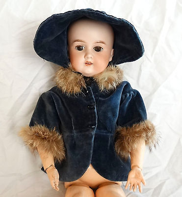 Title (ebay affiliate link): Old Vintage Blue Velvet Coat Fur Trimmed Glass Buttons Bonnet for Antique Doll