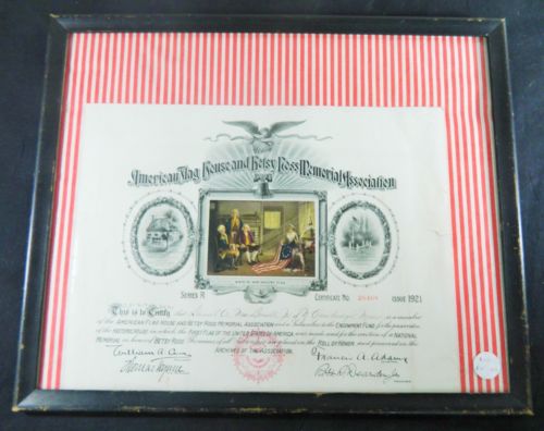 Title (ebay affiliate link): VINTAGE 1921 AMERICAN FLAG HOUSE and BETSY ROSS MEMORIAL Certificate -080534