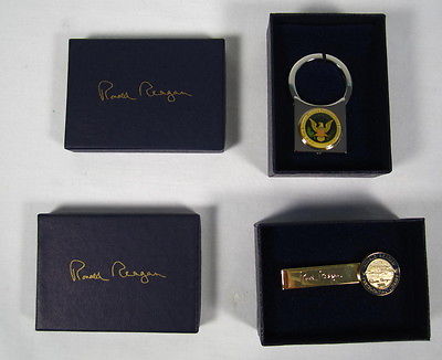 Title (ebay affiliate link): Ronald Reagan - Presidential Library Tie Bar Clip and Key Ring Set-Signed