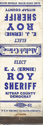 Title (ebay affiliate link): Elect Democrat E J Ernie Roy Sheriff Kitsap Co Washington Matchbook Cover