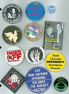 Title (ebay affiliate link): 12 Vintage Peace Anti-War Political Cause Pinback Buttons Million Man March