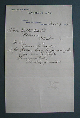 Title (ebay affiliate link): #219 - old 1892 EMPIRE, MONTANA MT letterhead PENOBSCOT MINE Frank Longmaid MGR