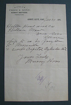 #62 - neat 1895 old GRANITE BUTTE, MONTANA mining letterhead PRIZE MINE Murray