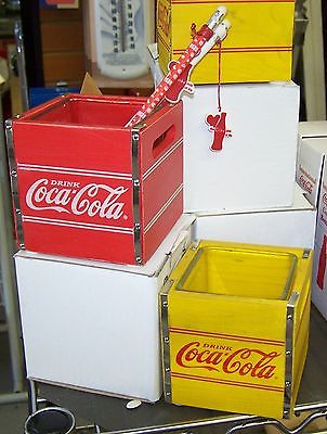 BEAUTIFUL COKE COCA COLA WOOD & GLASS CANDLE HOLDERS / PENCIL CUPS FOR DESK