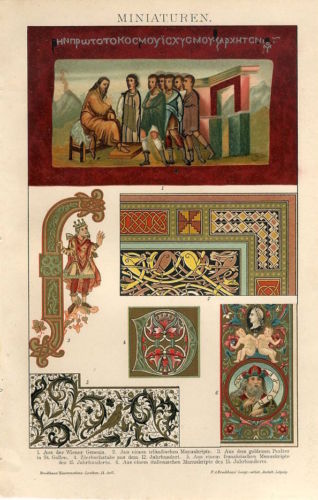 1894 ANCIENT BOOK MINIATURES Antique Chromolithograph Print