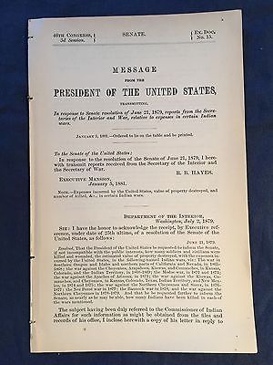 REPORTS FROM SECRETARY OF WAR & INTERIOR American Indian War Expenses 1881