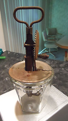 RARE EARLY 1900's OWENS ILLINOIS GLASS MEASURING CUP WITH HAND CRANK A&J MIXER