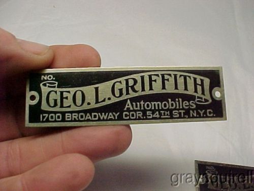 Title (ebay affiliate link): 2 VINTAGE ANTIQUE BRASS METAL TAGS/LABEL/EMBLEM GEO.L.GRIFFITH AUTOMOBILES NYC