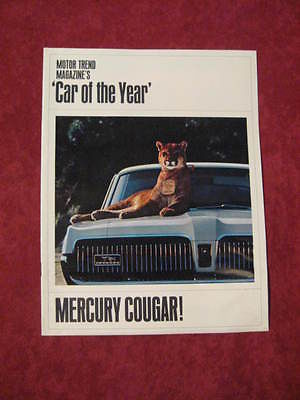 NOS 1967 Motor Trend Magazine's Car of the year Mercury Cougar Brochure Book Old