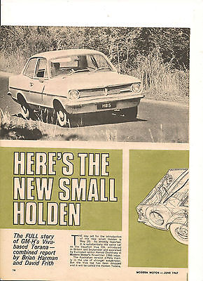 ORIGINAL VINTAGE 1967 HB HOLDEN TORANA AUSTRALIAN 6 PAGE PRE RELEASE FEATURE