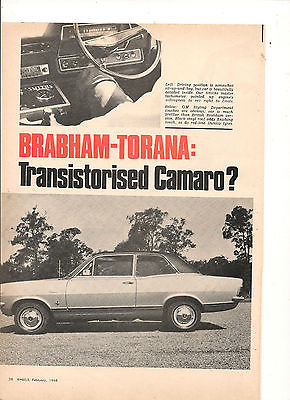 ORIGINAL VINTAGE 1968 HB HOLDEN BRABHAM TORANA SL AUSTRALIAN 8 PAGE FEATURE
