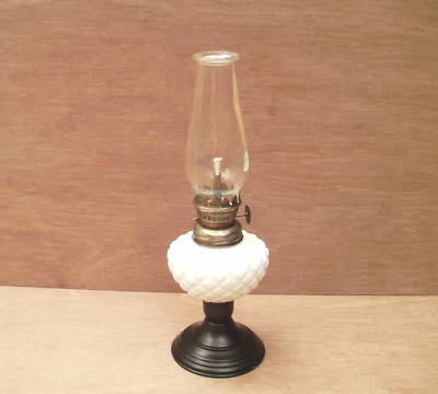 Vintage Diamond Design Milk Glass, Miniature Oil Lamp