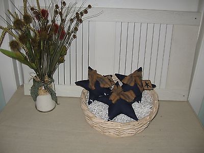 Primitive Fabric Bowl Fillers Blue Stars,w Grungy Tie,Buttons,tag Set of 3