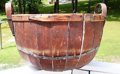 Antique Primitive Splint Wood Gathering Round Basket Laundry Apple Wooden Bushel