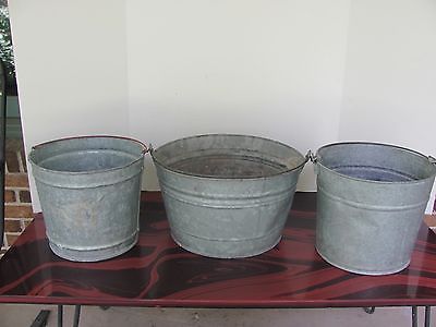 Title (ebay affiliate link): Vintage LOT 3 Old Farm Galvanized Metal Farm Milk Buckets Tub Garden Flower Pot