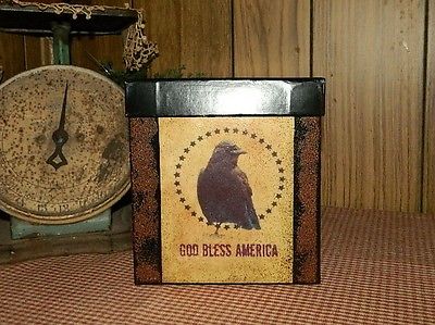 Title (ebay affiliate link): Primitive Black Grungy Aged Label Crow God Bless America Star Grubby Storage Box